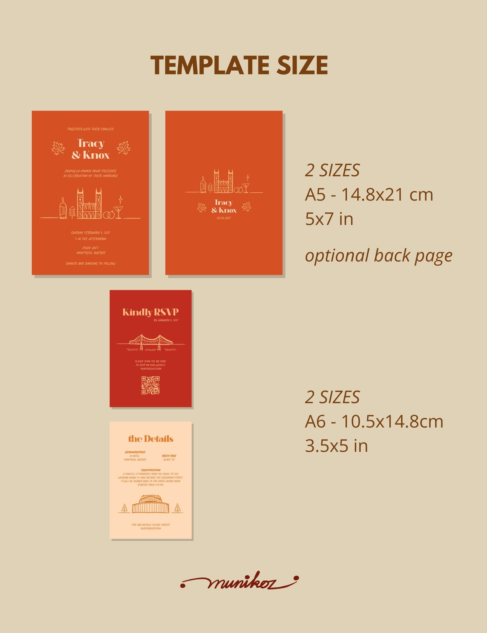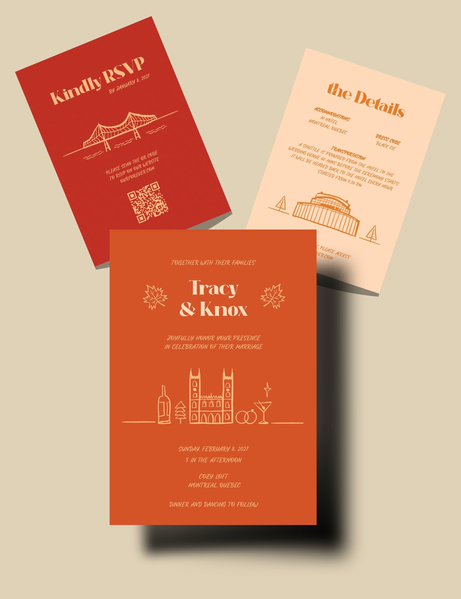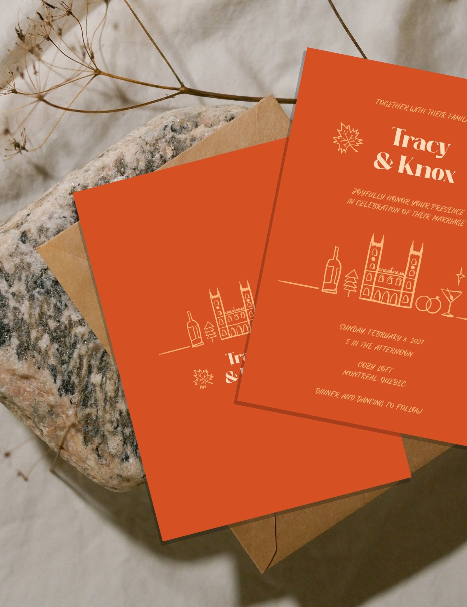Capture the romance of Montreal, Canada with this stunning Wedding invitation template! Inspired by the city’s charming streets, historic architecture, and French elegance, this design adds a touch of sophistication to your special day. Fully customizable and easy to edit, they’re perfect for couples who want to infuse their once-in-a-lifetime event with the magic of Montreal.